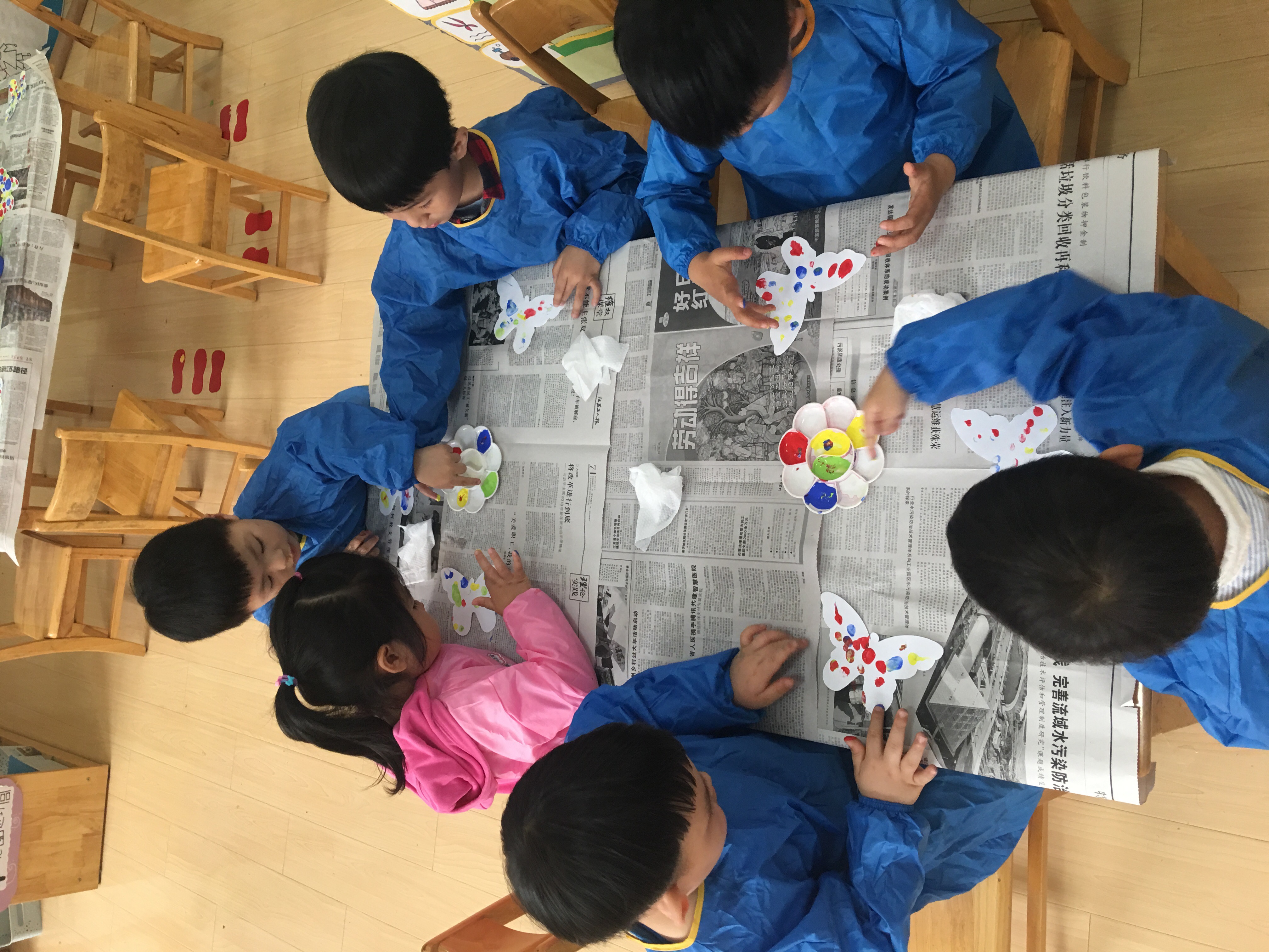 春天的“花”蝴蝶🦋 发布时间:2018/4/27 14:31:47 作者:刘纯 点击:14816 蝴蝶蝴蝶真美丽!身穿花衣在花丛里! 今天就用我们灵巧的小手充当画笔给纸蝴蝶🦋穿上美丽的花衣。小朋友们竖起你们的大拇指轻轻蘸颜色,用力压在纸片上,压完抬手就出现美丽的图案。