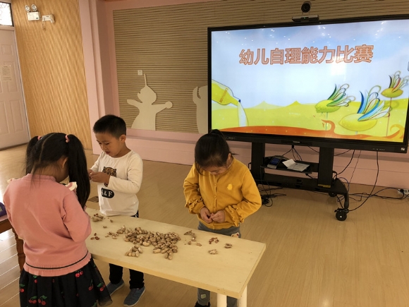 此次比赛分为两个内容:个人项目“折叠衣服”和集体项目“花生行动”。主持人季老师在赛前介绍了比赛的规则和要求,在小朋友们的掌声中有趣的比赛开始了。在个人项目“折叠衣服”比赛中,参赛幼儿先拉好外套的拉链,然后将衣服折叠整齐,还用小手压一压,保持平整美观。集体项目“花生行动”的任务是:先剥好花生,再运送花生米和花生壳,接着要存放好花生米,最后处理垃圾花生壳,传送需要的物品。每组参加集体项目比赛的四名幼儿以接力的形式进行,有条不紊,分工合作,每一组都圆满完成了比赛。最后,主持人为获奖的幼儿颁发了奖品,成功的笑容洋溢在每个孩子的脸上。