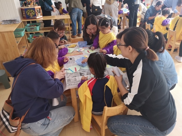 今天是家长们第一次走进幼儿园陪着宝贝们一起上学,小朋友们有了爸妈的陪伴,学习起来都有劲了!