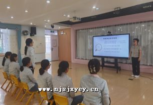 9月15日,世纪星幼儿园音乐教研组开展了本学期第一次教研活动。教研在教师们的自弹自唱中拉开序幕。组长高山凤老师认真倾听,给出指导意见,提高教师们的即兴伴奏能力。朱丹老师执教中班韵律活动《小象玩水》。幼儿在小象玩水的故事情境中,感受音乐欢快的节奏,根据音乐的变化,合拍地做“走”“打招呼”“扬鼻”“甩”等动作,在音乐中欢快地表现自己,并在两两互动中,体验音…
