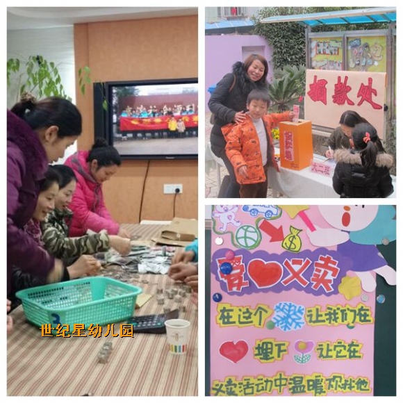 世纪星幼儿园开展“爱心义卖”捐助高淳福利院活动 发布人:能靓 发布时间:2015/1/30 8:55:51 用我的真心换你的真情 ——世纪星幼儿园开展“爱心义卖”捐助高淳福利院活动 “爱心无止境、义卖见真情”,1月26日下午三点,由世纪星幼儿园党支部发起,团支部策划组织的为期三天的“爱心义卖捐助高淳福利院”活动在寒冬中拉开了帷幕!屋外冷风瑟瑟,义卖场上却热情似火,各年龄班的幼儿纷纷拿出自己心爱的玩具、图书等物品参与义卖,为福利院的孩子们奉献自己的一份爱心。 活动前期,经老师和家委会共同商议后,各年级组拿出了义卖活动方案,制作了具有本班特色的宣传海报,向全园家长发出了义卖活动的邀请,发动家长和幼儿一起收集义卖的物品。由于前期准备充分,义卖活动现场,孩子们自己动手铺地垫,摆放商品,粘贴价格标签,所有的义卖物品都井然有序地摆放在 “爱心商铺”中供人挑选,小朋友们还各显神通争先恐后的向顾客推销自己的商品,为自己能多筹集一些善款大声的吆喝着。 这热烈又欢快的场面为寒冷的冬天增添了一份别样的温暖和情谊。家长们不仅耐心的陪着孩子们进行义卖活动,还与孩子们一起将义卖得来的钱款投入捐款箱。家长们纷纷表示:“这种形式的爱心活动特别有意义,受教育的不光是孩子,连我们也乐在其中。” “用我的真心,换你的真情”,本次爱心义卖活动筹集到的款项将由家委会成员购买冬季保暖用品,于近期捐赠到高淳福利院,相信在这寒冷的冬天里,世纪星幼儿园这份浓浓的爱心一定可以温暖福利院的孩子们。 (信息员:尤晓敏)