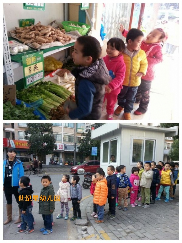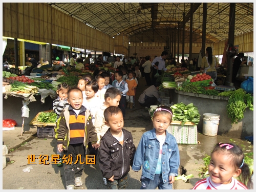 新《纲要》指出: “幼儿园应与家庭、社区密切合作,综合利用各种教育资源,共同为幼儿的发展创造良好的条件。”世纪星幼儿园在贯彻新《纲要》进行教育的同时,积极利用社区资源,多方位多渠道对幼儿进行教育,促进幼儿健康成长。 为了配合教学活动——参观菜场,让幼儿知道菜场里有品种繁多的蔬菜和其他食品,是人们买菜和卖菜的地方。近日,组织全体中班幼儿参观了菜场。孩子们对菜场里的一切都感到很新鲜,看看这、摸摸那,他们一边仔细观察,一边还不停地说着、问着:“我知道这是黄瓜!”“我知道这是猪肉! ”“白萝卜是长在泥土里的吗? ” 这次参观活动,丰富了孩子们对蔬菜的认识,提高了他们的观察力,促进了幼儿社会性的发展。