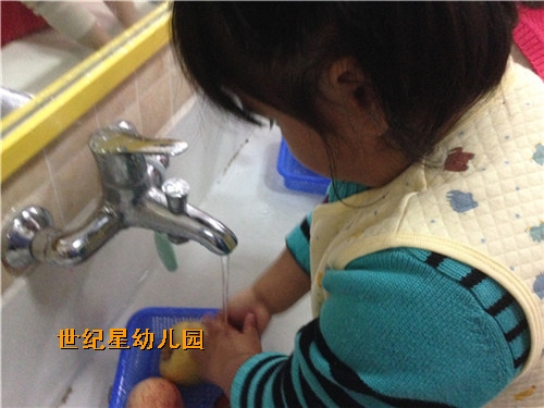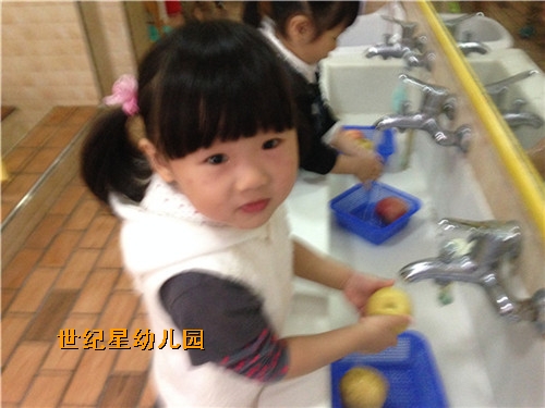 我们小朋友不仅会剥水果,今天还学会了洗水果,看!我们洗的像模像样的吧~水果洗好了,我们大家一起分享咯!