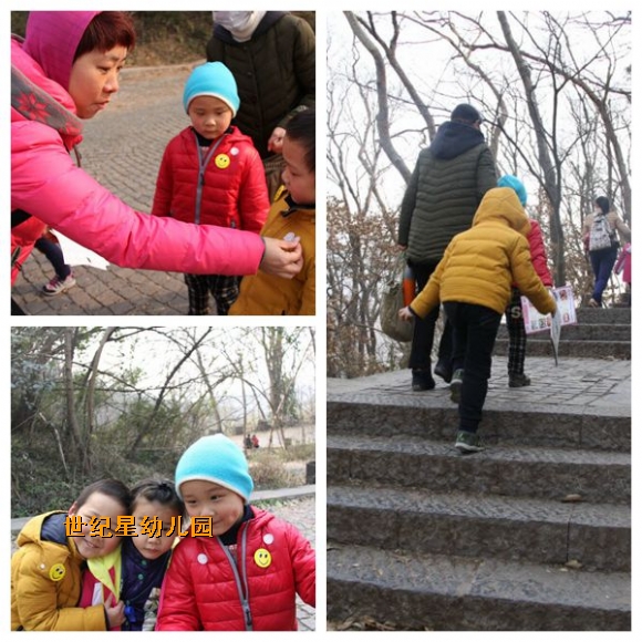 新年登山步步高,世纪星幼儿园在2015新年到来之际,举办了‘健康活力星,快乐亲子行“的登山活动。爬山活动路线以白马公园为起点,终点设置在紫金山天文台。12月31号上午9:30分,家长和孩子们集合在白马公园,大家在老师的带领下,一起做了热身活力操“小苹果”,温和的阳光洒在白马公园草坪上,映红了每一个小朋友欢乐的笑脸。登山途中孩子们与老师或爸爸、妈妈大手牵小手,相扶相伴,相互鼓励,向着目的地前进。大家一路上加油声、欢笑声此起彼伏,每个到达山顶的孩子,都获得了一份礼物,他们个个兴奋不已,家长们更为孩子们独立的登山表现惊叹。最后大家都迫不及待地合影留念,交流谈笑,整个天文台热闹非凡。 ◢ 网友评论