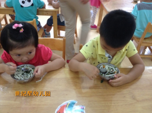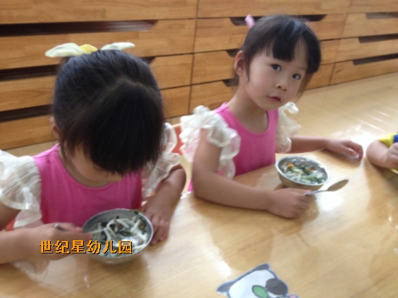 我最喜欢上幼儿园了,因为幼儿园的饭菜最好吃,小朋友们在一起吃饭真开心!瞧!我们会自己吃饭,不用老师喂饭,我们的小手能干吧。