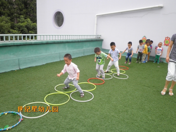 呼啦圈真好玩,可以转可以跳,我们把圈排排放,排成各种造型,你来跳,我来跳,大家一起跳跳跳,我们像快乐的小兔子,比比看谁跳的高,谁跳的快。