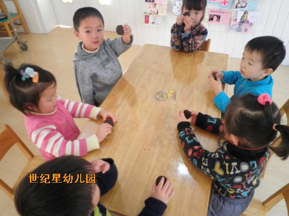这是我们自己去超市买来的饼干哦!先看一看,摸一摸,再闻一闻,好香啊,我想一定很好吃。终于可以吃饼干了,有的饼干脆脆的,有的饼干软软的,有的甜甜的,有的香香的,的确很好吃。