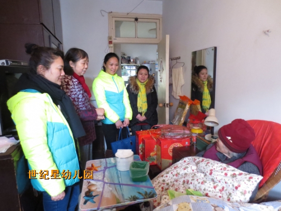 世纪星幼儿园新年慰问退休老教师 发布人:能靓 发布时间:2015/2/6 12:40:38 在2015年新春来临之际,世纪星幼儿园党、团、工会与退休老教师代表开展了向本园退休老教师慰问活动。给退休老教师送去了慰问品,向他们致以新年最诚挚的问候,同时对退休教师过去在教育事业中默默耕耘、无私奉献而作出的巨大贡献,表示无限感激。 每到一家慰问,杨帆园长都要与老人们谈心,询问其家庭、生活情况,并祝老人们身体安康、新年快乐。 老教师们对幼儿园领导、老师们的问候与祝福表示感谢,也对世纪星幼儿园的发展和进步感到欣慰和高兴,同时祝愿幼儿园在新的一年取得更大的发展。(信息员 能靓)