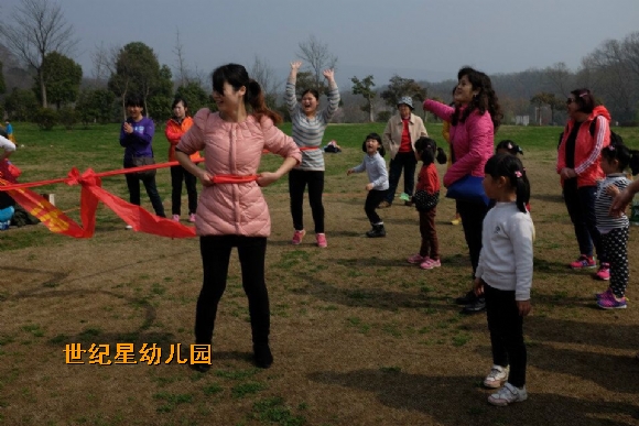 世纪星幼儿园组织中班年级组开展亲子活动 发布人:能靓 发布时间:2015/3/25 16:44:58 世纪星幼儿园组织中班年级组开展亲子活动 近日,世纪星幼儿园中班年级组开展了丰富多彩的亲子活动,为平时上班忙碌的父母提供了一个温馨的亲子同乐平台,寓教于乐。 中一班组织了一场“亲子DIY蛋糕制作”活动,蛋糕制作现场气氛热烈,小朋友们与家长一起兴致高昂地制作出一个个富有创意的蛋糕作品。活动开阔了小朋友的视野,提高了小朋友的动手能力,同时,整个制作过程,都是孩子与父母共同参与,共同制作,使孩子充分体验与父母在一起的愉悦和甜蜜,增进了亲子的感情。中二班小朋友、老师、家长一起相约来到鸟语花香的中山植物园,开展了一次愉快充实的春天之旅。在植物园里,孩子们不仅观赏了各类有趣的植物,体验了奇妙的热带雨林,在呼吸着清新空气的同时也感受了远离城市喧嚣那种别样的静美。活动场上,老师们还组织孩子和家长们进行了一系列的亲子游戏, 家长和孩子们的踊跃参与,让有如世外桃源的植物园也充满了欢声笑语。中三班全体幼儿、家长、老师迎着明媚的阳光,踏着轻盈的脚步,来到中山陵景区“博爱园”开展亲子活动。在大草坪上的亲子比赛活动,更是让孩子们激动不已,不论是“青蛙过河”还是“星球大战”,都让小朋友和家长们玩的积极投入又开心。加油声中,亲子活动热闹非凡,孩子们都高兴的说:“今天是我最快乐的一天!”(信息员:尤晓敏)