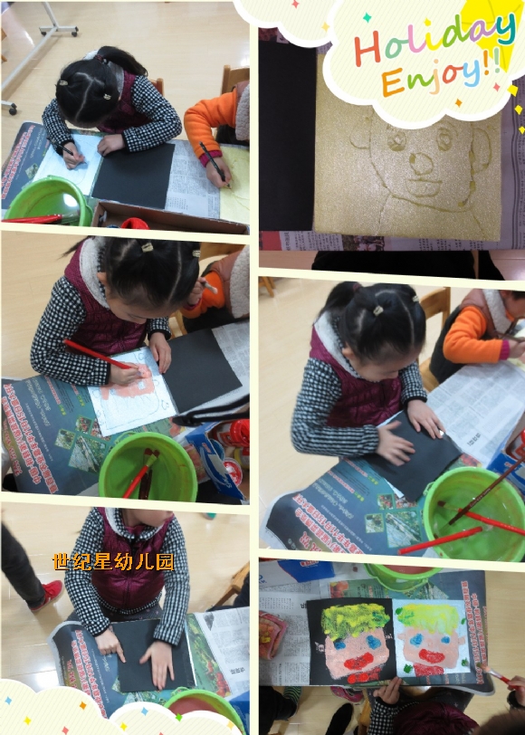 让幼儿体会颜色的和谐之美,并创造出一些很有趣味的绘画内容。