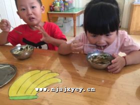今天是开学第一天,宝贝们适应的都不错哦,不仅认识了自己的标记,和小伙伴游戏也很开心,香喷喷的面条吃的很棒呢!